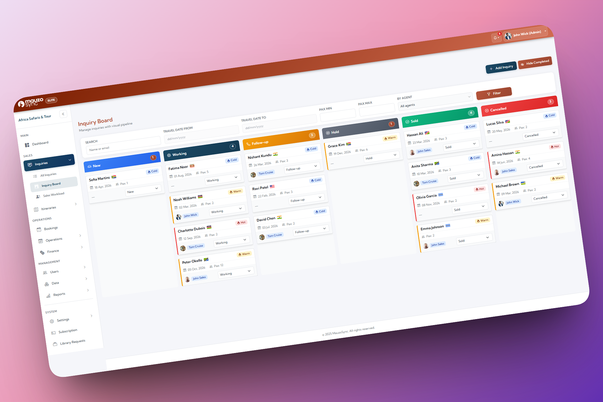 A proper tour operator platform centralizes every lead, shows status and history, and nudges your team when a follow-up is due. Templates can carry your tone; automation should handle reminders and routing, not replace the actual message. MauzoSync is built around that workflow: one inquiry record, visible pipeline, and follow-ups that stay human.
